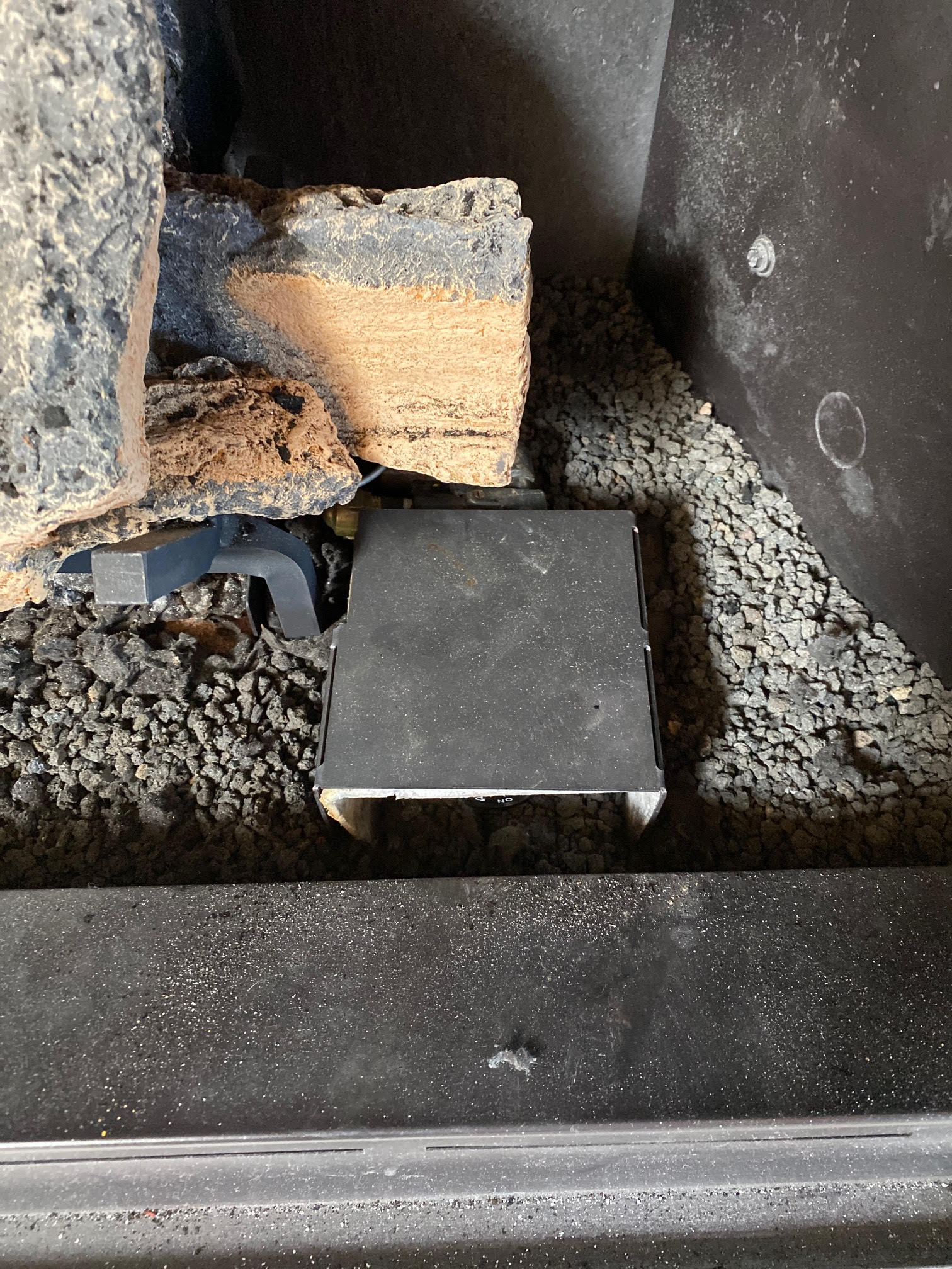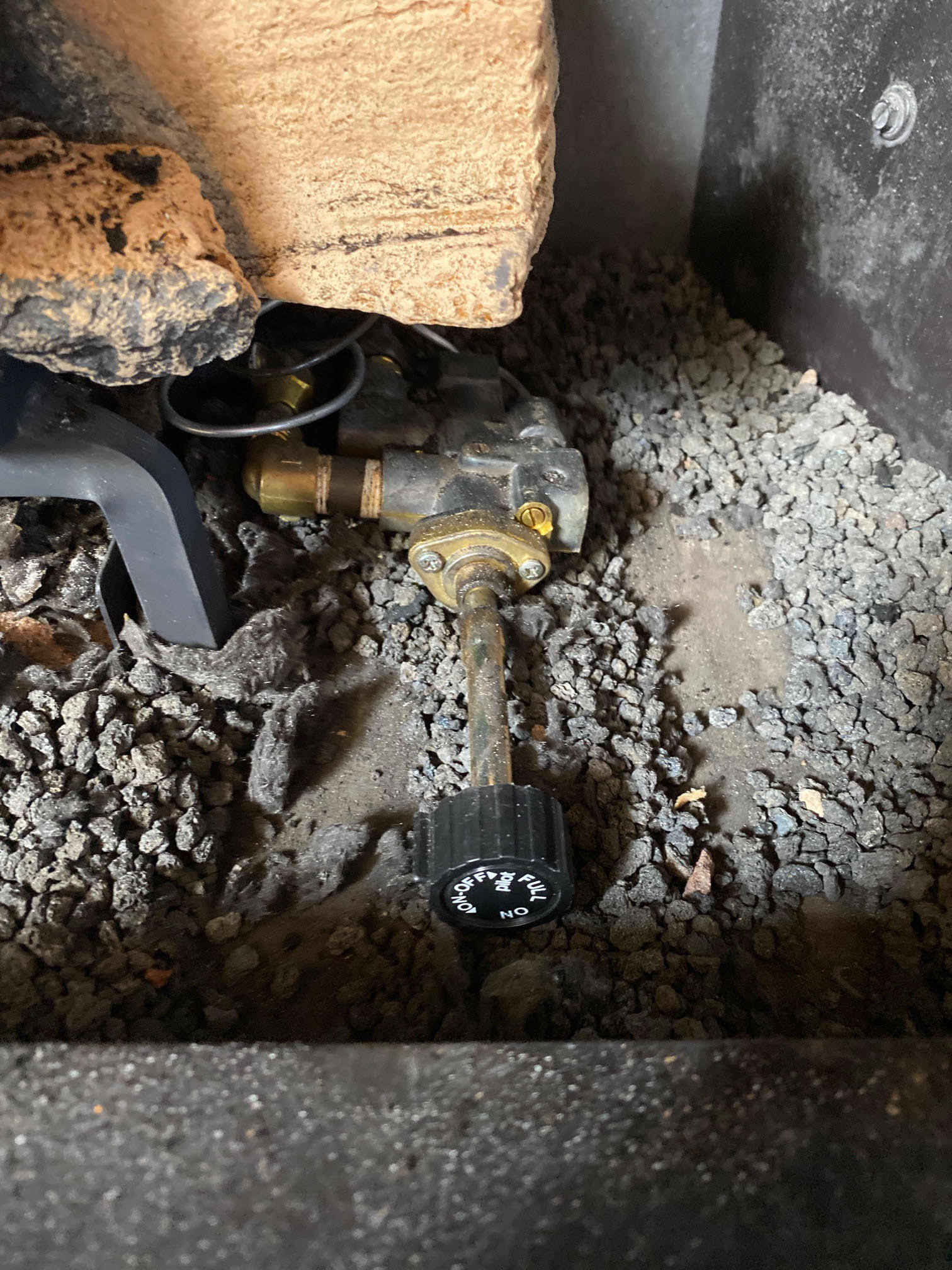 Make sure the autopilot is on. Inside the fireplace to the right you will see a black box. Pull it up to open. You will see a lever to twist off and on. Twist the level all the way to the left to turn on. Remove the level stick once the fireplace is turned on. This way the knob is not hot and can stay cool when the fireplace is ready to turn off. Put cover back when fireplace is on. Careful when removing the box, it might be hot. See photos below.